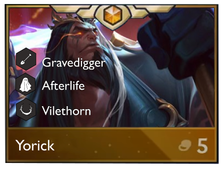 Yorick summons a ring of spirits for 5 seconds at the center of the board, pulling in the closest ally and enemy and knocking aside all other allies and enemies. Units within the ring deal and take increased damage. While the ring is active, Yorick stops attacking and heals allies for a pecentage of all damage done in the ring.